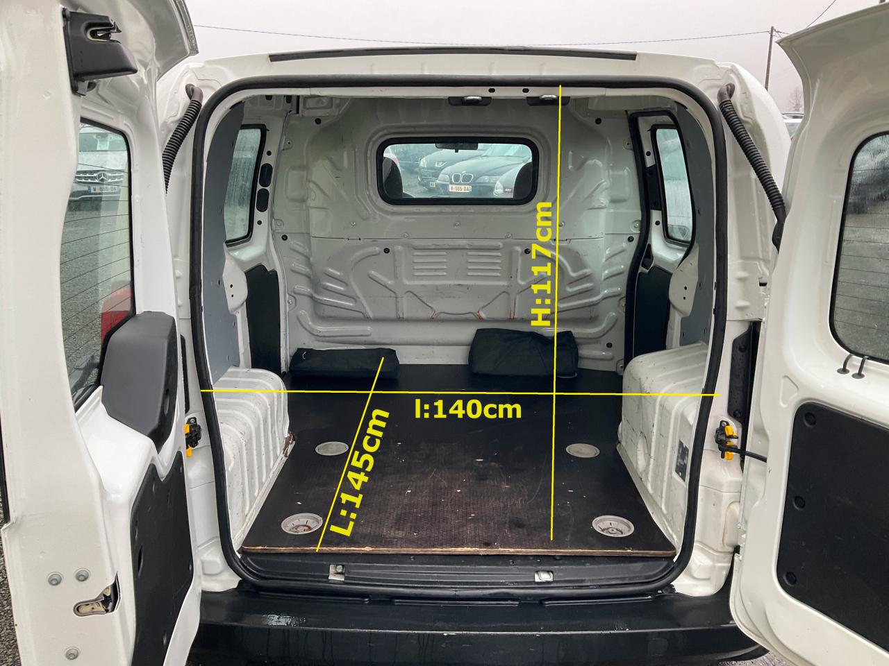 TVA RECUPERABLE Longueur utile 145cmBluetoothClimatisationAttelagePlancher boisHabillage plastique Jantes alu 14 pouces Lèves vitres électriquesPortes arrière battantes vitrées Porte latérale coulissante vitrée x2Roue de secoursABS